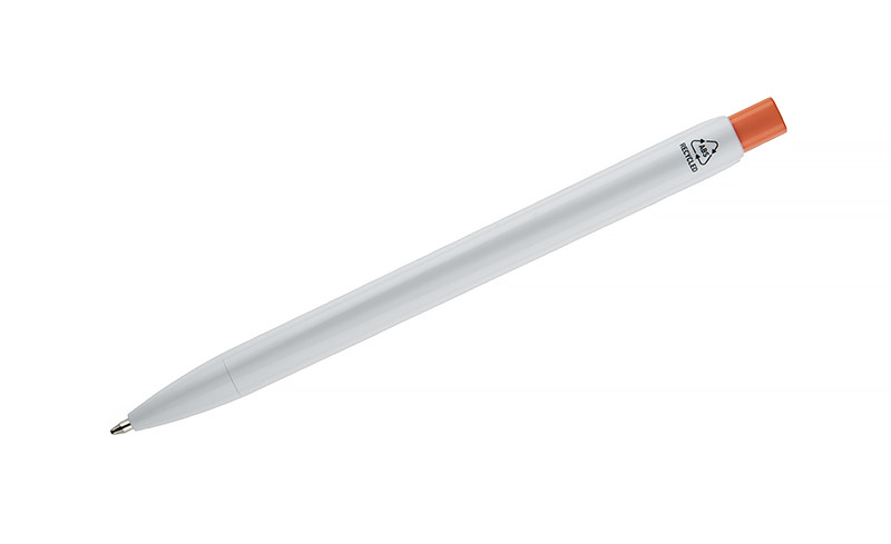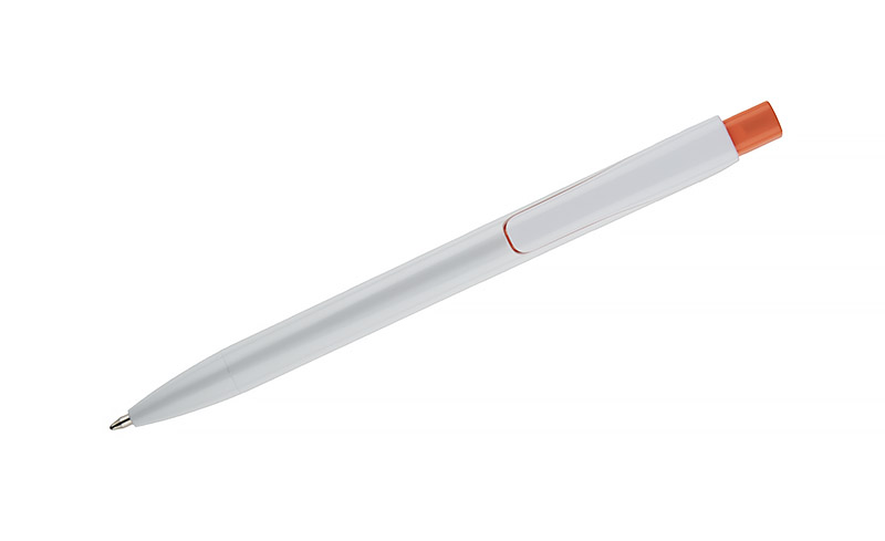 Długopis KLIBO wykonany jest z tworzywa rABS w klasycznym białym kolorze, z lakierowanym wykończeniem. Wyróżnia go kwadratowy, kolorowy przycisk oraz wąski, płaski klip, który pewnie trzyma się dokumentów i notesów. Mechanizm automatyczny zapewnia wygodne użytkowanie, a wkład typu G2 o grubości pisania 1,0 mm gwarantuje płynny i równy zapis. Lekka konstrukcja i nowoczesna forma sprawiają, że KLIBO to praktyczny gadżet reklamowy do codziennego użytku.