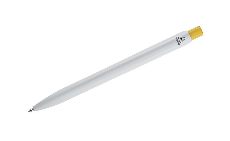 Długopis KLIBO wykonany jest z tworzywa rABS w klasycznym białym kolorze, z lakierowanym wykończeniem. Wyróżnia go kwadratowy, kolorowy przycisk oraz wąski, płaski klip, który pewnie trzyma się dokumentów i notesów. Mechanizm automatyczny zapewnia wygodne użytkowanie, a wkład typu G2 o grubości pisania 1,0 mm gwarantuje płynny i równy zapis. Lekka konstrukcja i nowoczesna forma sprawiają, że KLIBO to praktyczny gadżet reklamowy do codziennego użytku.