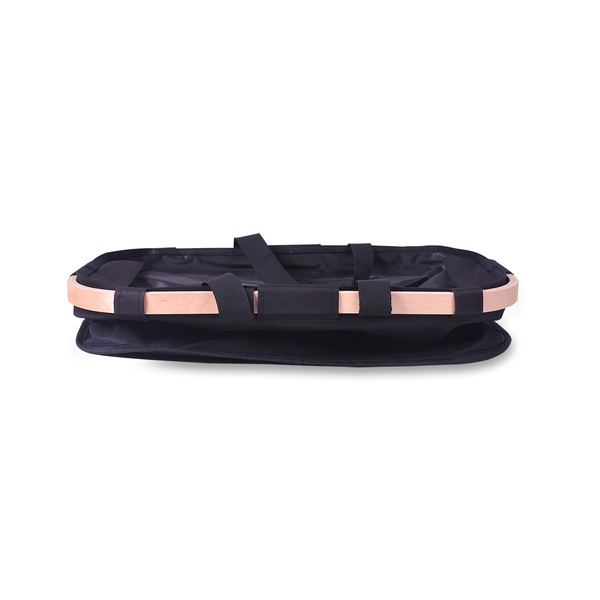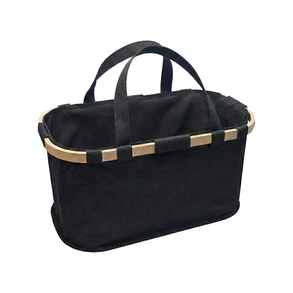 Stylowy i funkcjonalny kosz na zakupy z dodającą elegancji drewnianą ramą. Posiada solidne uchwyty, które zapewniają komfort noszenia. Dzięki składanej konstrukcji można go łatwo złożyć na płasko, co ułatwia przechowywanie. Maksymalne obciążenie: do 9 kg. Pojemność: 33 litry.