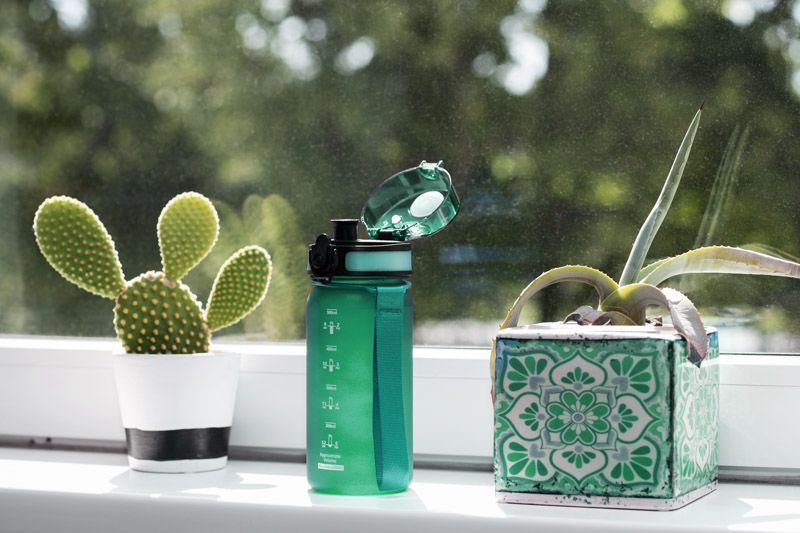 Butelka MOTIVA mini wykonana z lekkiego i wytrzymałego tworzywa mieści 500 ml napoju – idealnie sprawdzi się w drodze, na siłowni czy w pracy. Posiada blokowany ustnik zabezpieczający przed przypadkowym rozlaniem, wygodny pasek do noszenia oraz podziałkę ułatwiającą kontrolę spożycia płynów. W ofercie dostępna jest również większa wersja tego modelu.