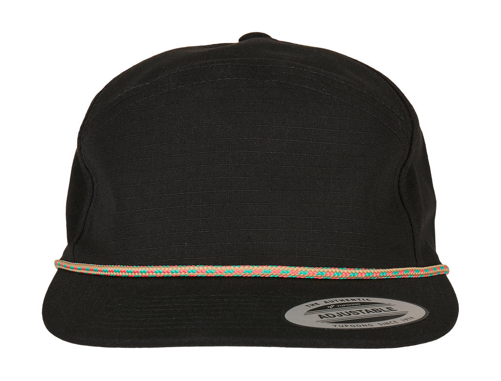 Pięciopanelowa konstrukcja oraz płaski daszek ośmiokrotnie stębnowany dodają charakteru i stylu. Dodatkowo, na daszku znajduje się pleciona opaska w kontrastowym kolorze, która nadaje czapce unikalnego wyglądu.