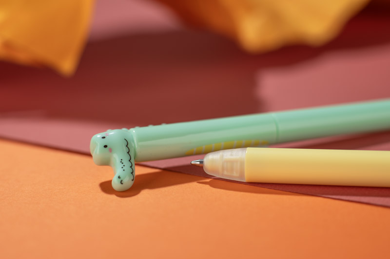 Długopis ANIMAL z motywem krokodyla wyróżnia się lekko humorystycznym stylem i przyjemnym w dotyku, lakierowanym wykończeniem. Korpus w odcieniu zieleni oraz nasadka w kształcie krokodyla nadają mu wyjątkowy charakter. Mechanizm przekręcany typu twist umożliwia łatwe wysuwanie żelowego wkładu (0,5 mm), który gwarantuje płynne i równomierne pisanie. To praktyczny i zabawny gadżet, który wnosi odrobinę luzu do codziennych obowiązków.