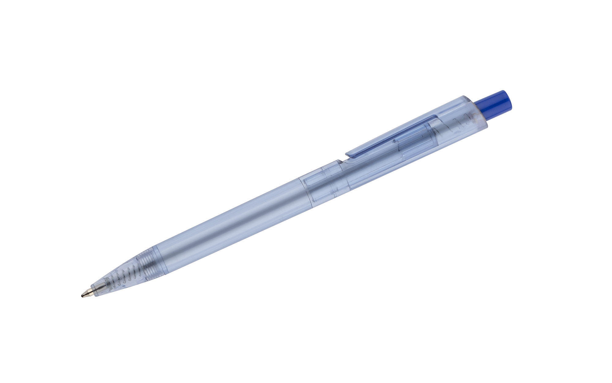 Wykonany z tworzywa rPET, ten długopis nie tylko pomaga w redukcji odpadów z tworzywa sztucznego, ale także posiada unikalny charakter dzięki przezroczystemu korpusowi w kolorze niebieskim.