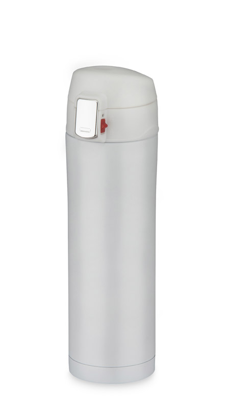 Kubek termiczny LOCK MAT o pojemności 440 ml to niezawodny towarzysz w podróży i w biurze. Dzięki podwójnej ściance z izolacją próżniową utrzymuje temperaturę napojów przez długi czas, a zewnętrzna powierzchnia nie nagrzewa się, chroniąc dłonie przed oparzeniem. Pokrywka typu flip-top z klapką otwieraną od góry pozwala na wygodne picie i szczelne zamknięcie – kubek nie przecieka nawet w torbie. Mechanizm otwierania „naciśnij” ułatwia obsługę jedną ręką. Matowe wykończenie nadaje mu nowoczesny wygląd, a nowe kolory sprawiają, że łatwo dopasować go do identyfikacji wizualnej marki. Produkt można oznakować logo, tworząc praktyczny i estetyczny gadżet reklamowy.