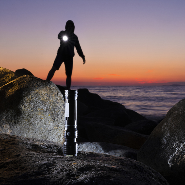 Doskonała latarka dla wymagających o strumieniu światła 250 lumenów i zasięgu 200 metrów, dioda CREE XPG (5 W). Wyposażona w wysuwany panel roboczy zasilany 16 diodami COB (3W) 160 lumenów o żywotności 100 000 godzin. Magnes umieszczony u podstawy. Funkcja zoom. Nylonowe etui. Zasilana 4 bateriami AAA (dołączone). Pakowana w upominkowe opakowanie.