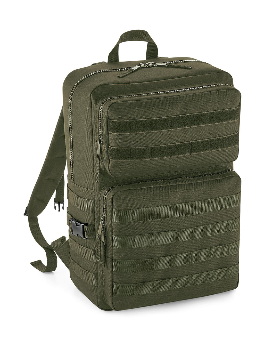Główna komora zapinana na zamek z wewnętrzną wsuwaną kieszenią oraz 2 duże kieszenie z przodu zapewniają dużo miejsca na przechowywanie wszystkich niezbędnych rzeczy. Dodatkowo, plecak jest kompatybilny z łatką MOLLE BG840 oraz kieszeniami Modulr ™ BG241 i BG242.