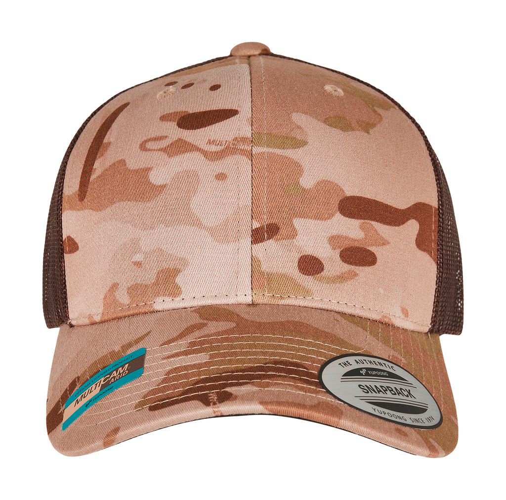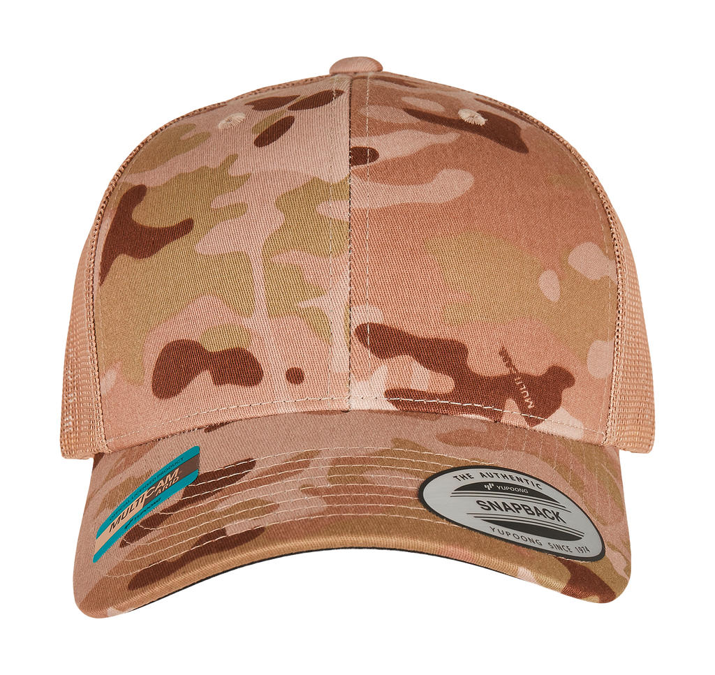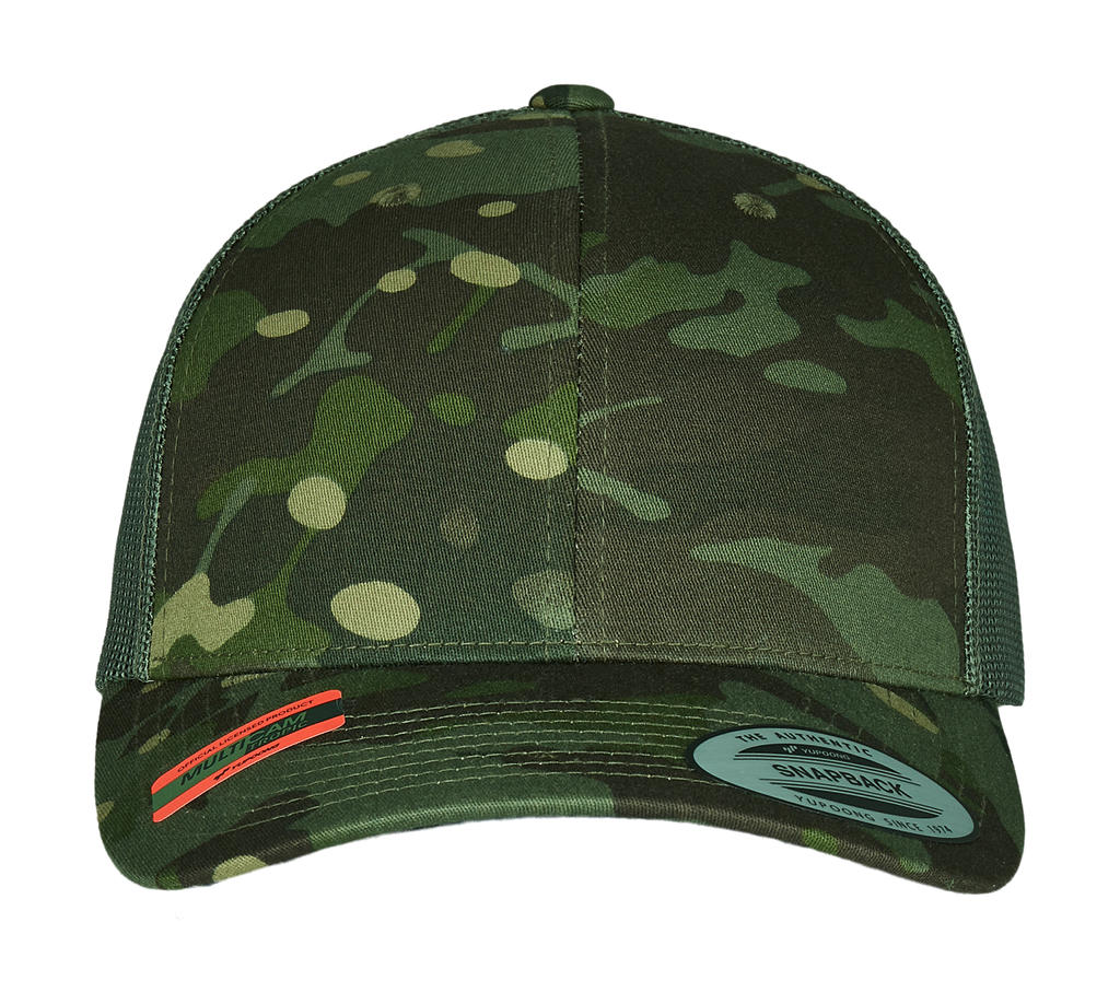 Wyróżnij swoją firmę nadrukiem reklamowym na naszej doskonałej czapce z daszkiem Retro Trucker Multicam®!