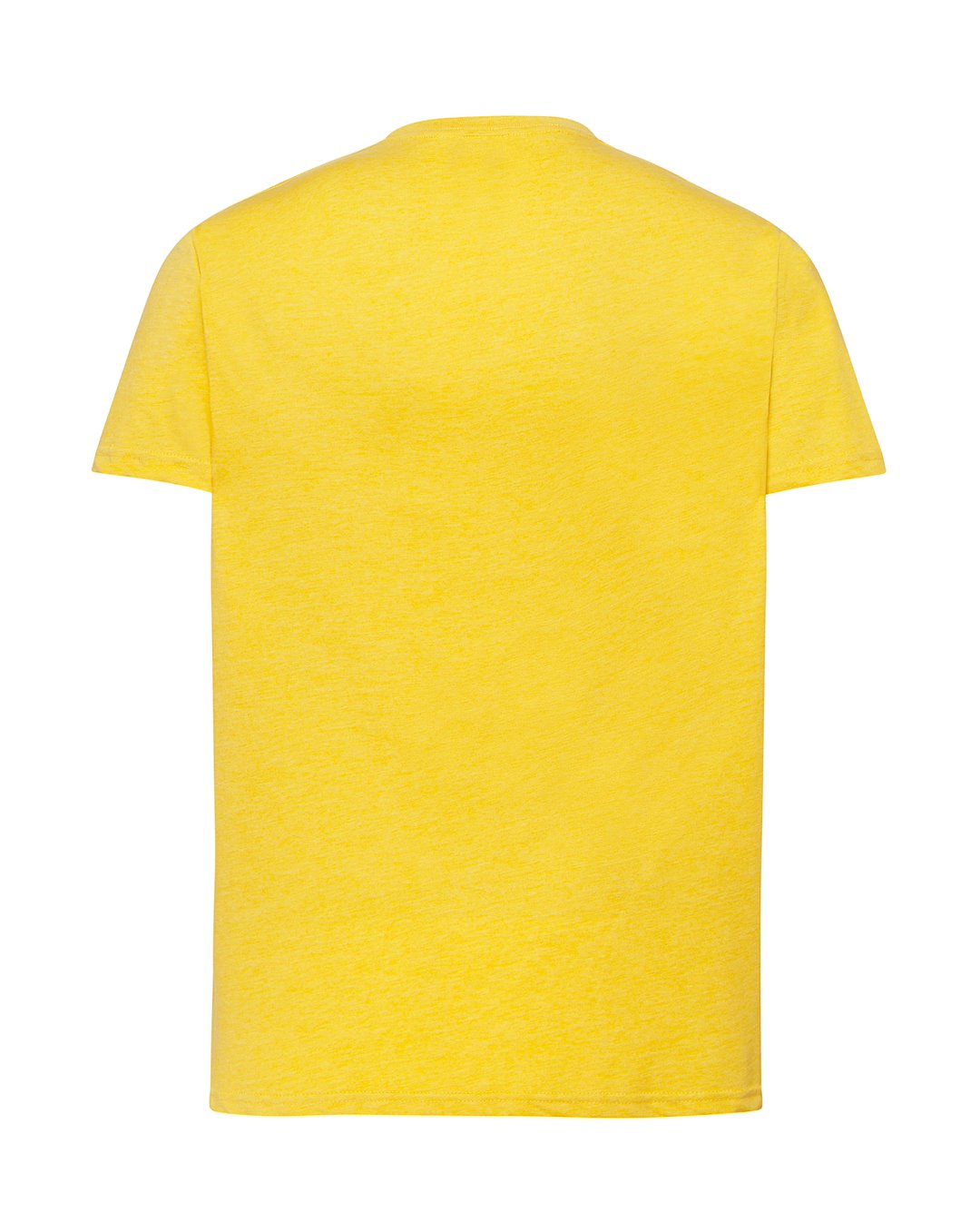 T-shirt męski z krótkim rękawem. Brak bocznych szwów. Podwójne szwy na ramionach. Wzmocniony lycrą ściągacz. Taśma wzmacniająca. 100% bawełna stabilizowana.
