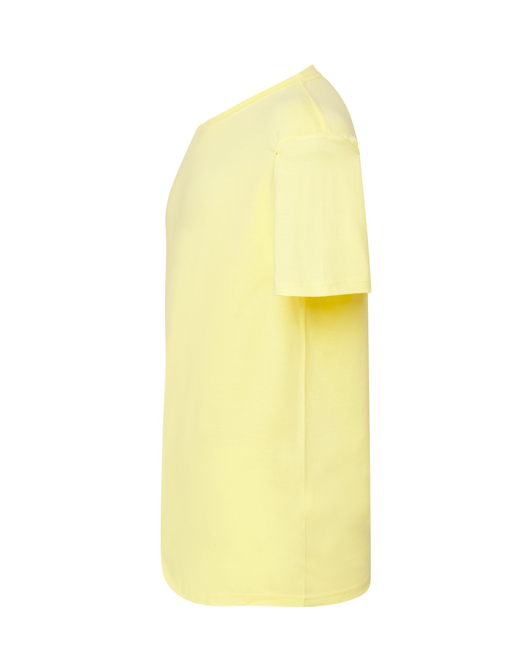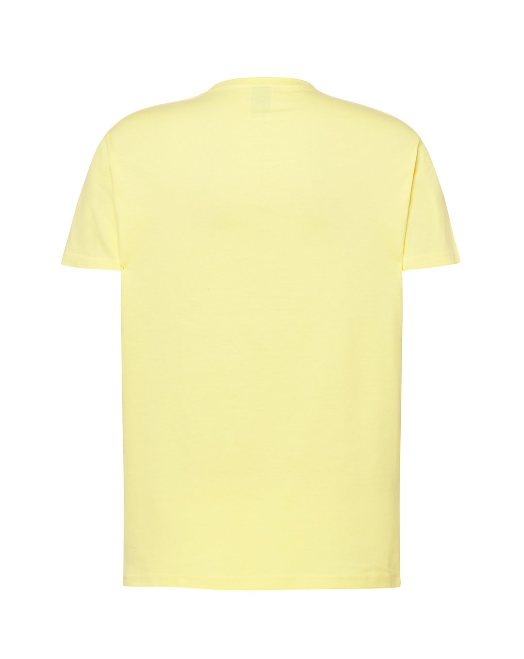 T-shirt męski z krótkim rękawem. Brak bocznych szwów. Podwójne szwy na ramionach. Wzmocniony lycrą ściągacz. Taśma wzmacniająca. 100% bawełna stabilizowana.