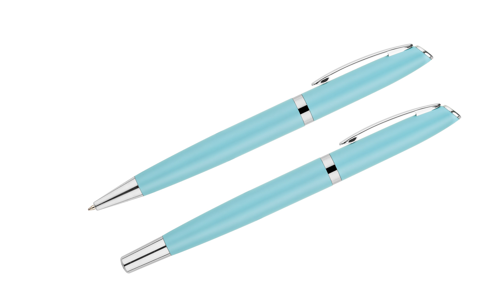 Składający się z eleganckiego długopisu i pióra kulkowego, ten zestaw personalizowanych gadżetów reklamowych z nadrukiem jest nie tylko praktyczny, ale także stylowy. Wykonane z metalu przybory piśmiennicze zapakowane są w dopasowany kolorystycznie kartonik, który dodaje im elegancji.