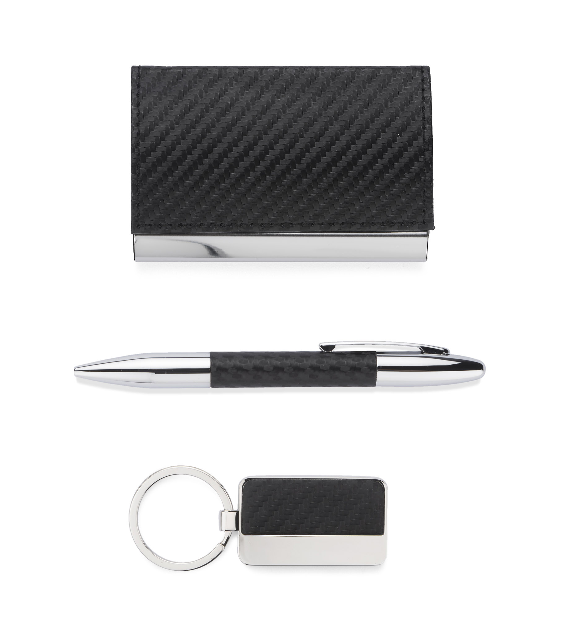 W skład tego eleganckiego zestawu wchodzi stylowy wizytownik, praktyczny brelok oraz elegancki długopis, które doskonale sprawdzą się jako artykuły promocyjne dla Twojej marki. Całość jest starannie zapakowana w eleganckie czarne pudełko, nadając prezentowi wyjątkowego charakteru.